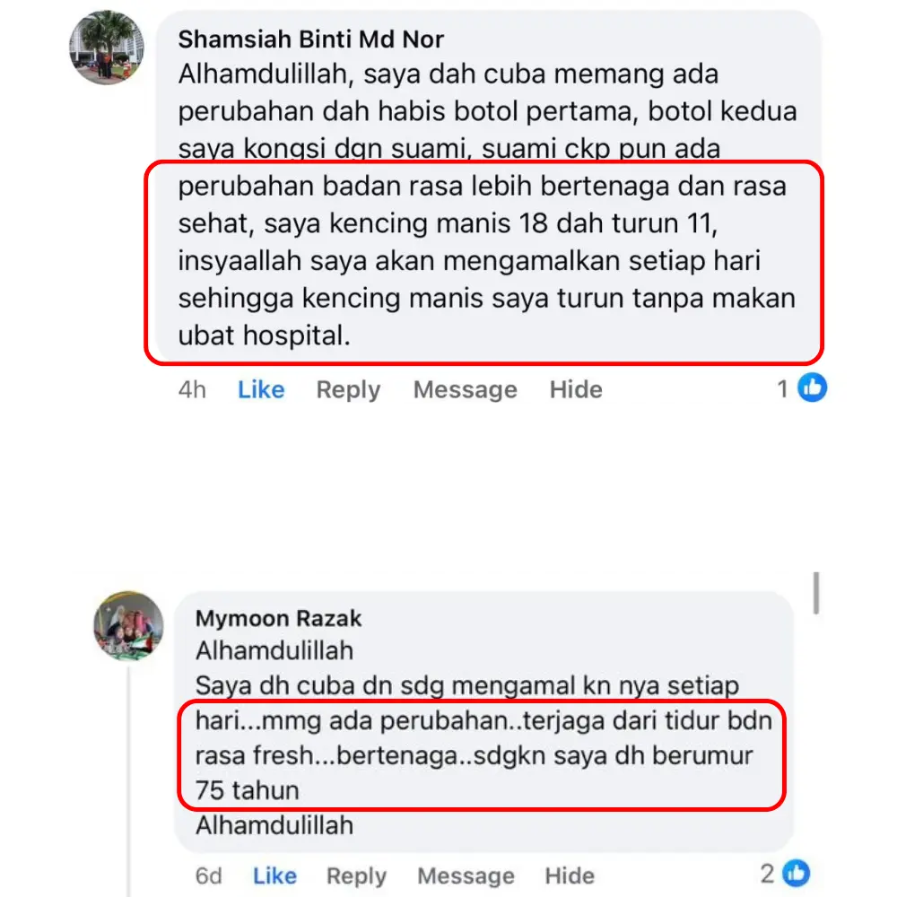 "Baru habis 1 botol dan nampak kesan ketara , badan makin bertenaga , kemas 1 rumah tanpa rasa letih."