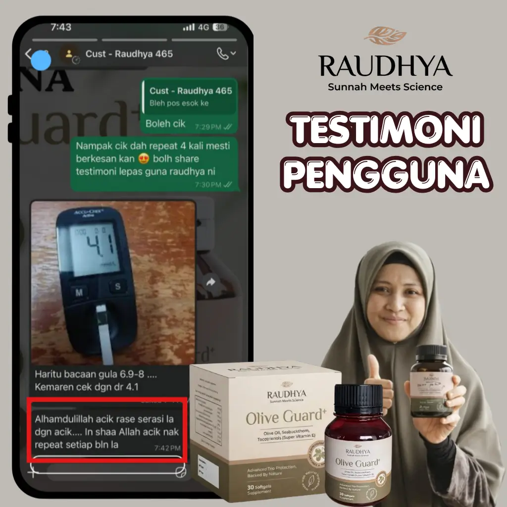 "Bacaan gula yang semakin menurun selepas consistent dengan pengambilan Raudhya."
